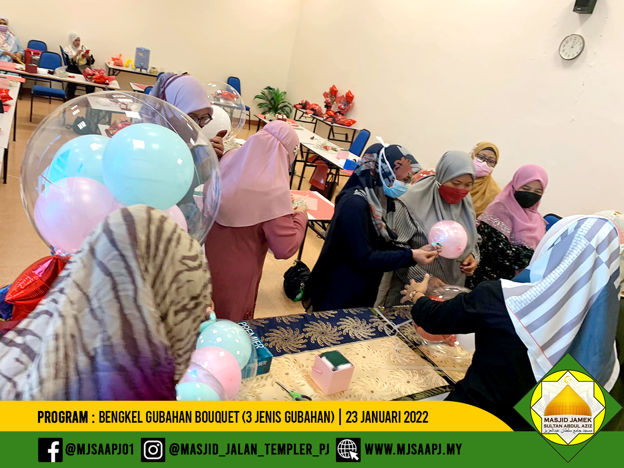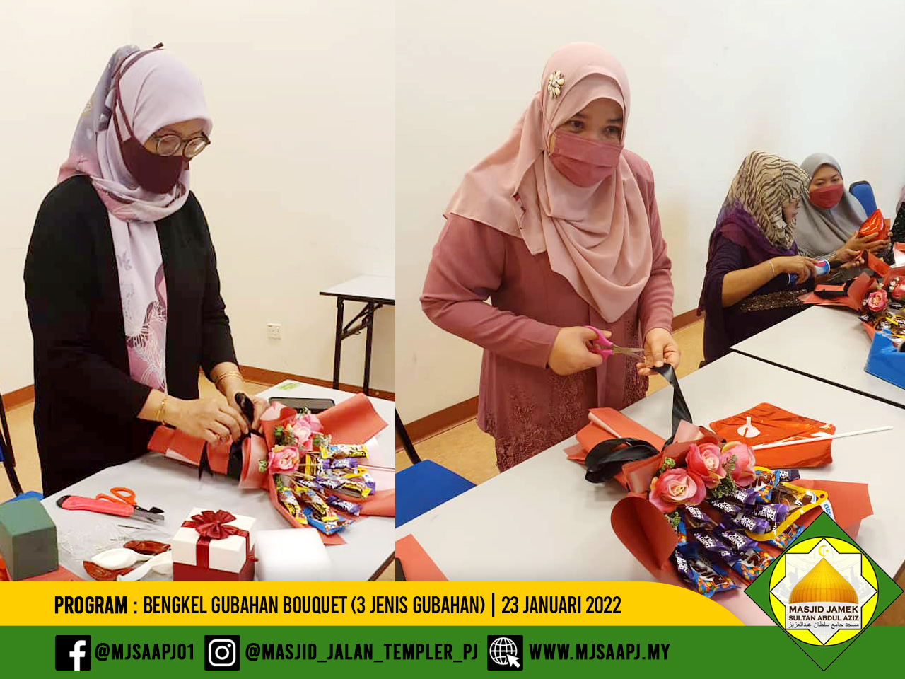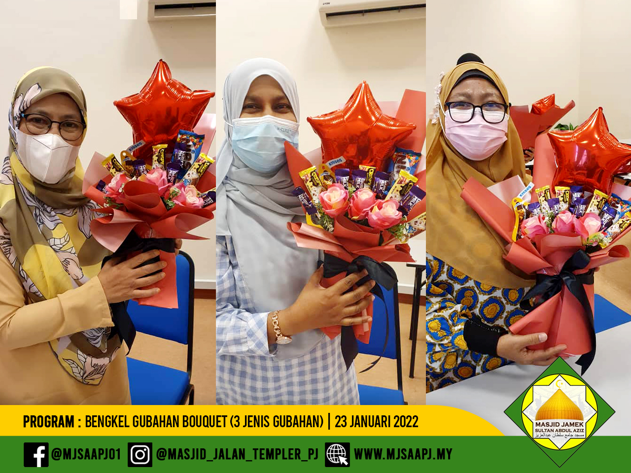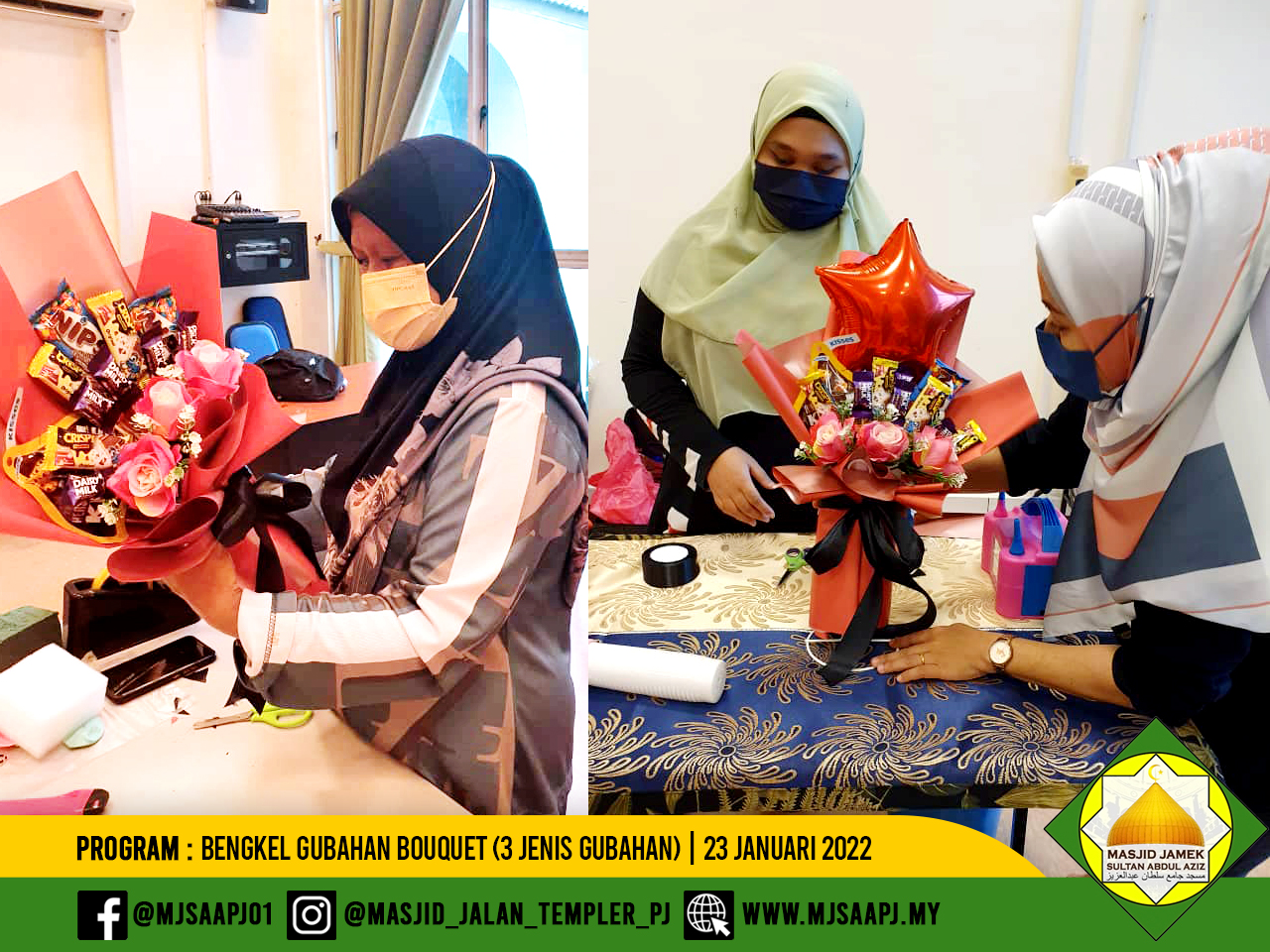 27 Januari 2022 – Bengkel Gubahan Bouquet, program muslimat pertama pembuka tahun 2022, telah berlangsung dengan jayanya pada 23 Januari lalu di Bilik Kuliah MJSAA.