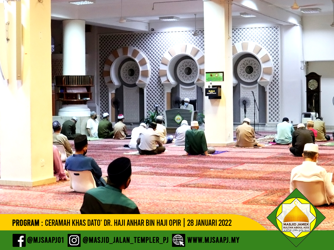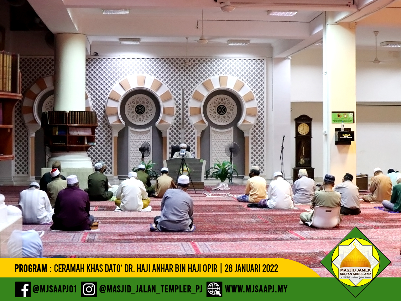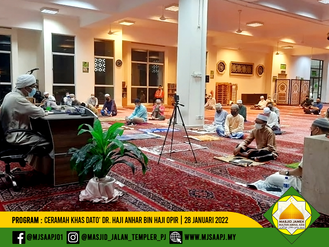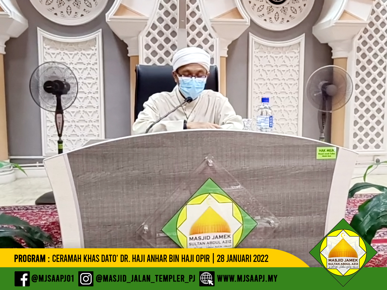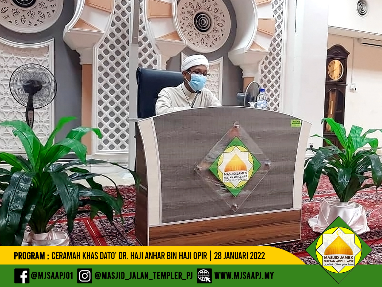 28 Januari 2022 – Alhamdulillah, selesai Program Ceramah Khas bulan Januari ini. Ceramah Khas bertajuk Adab Berjiran ini telah disampaikan oleh jemputan istimewa Sahibus Samahah Dato’ Dr. Haji Anhar bin Haji Opir (Dato’ Seri Utama Diraja Mufti Selangor).